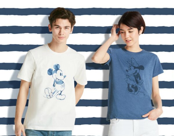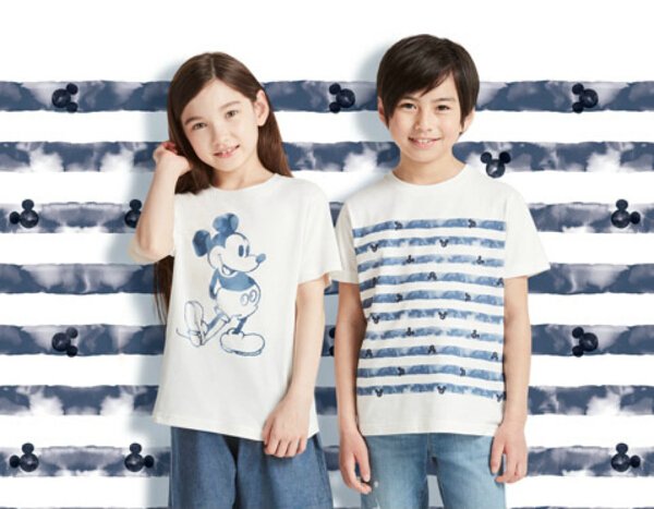 Mickey Blue. This UT collection features refreshing designs with Mickey Mouse art in an indigo blue-dyed look inspired by West Coast beach. The collection comes in sizes for the whole family.